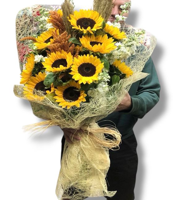 Ay çiçeği ve şebboylar ile büyük boy buket