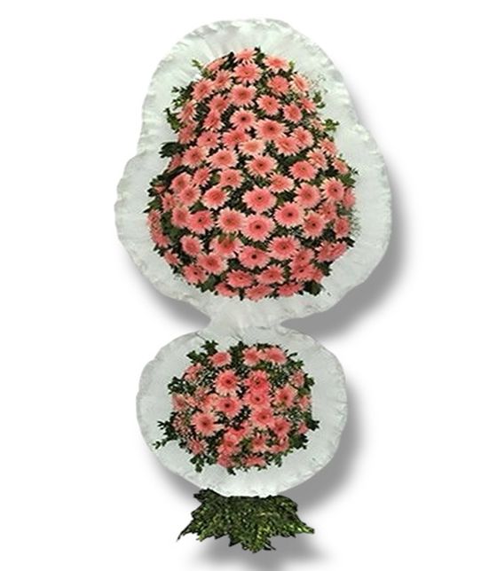 Düğün nikah ve açılış için gönderimi yapılabilen yaklaşık 2 metre yüksekliğinde pembe gerbera ile hazırlanan ayaklı sepet