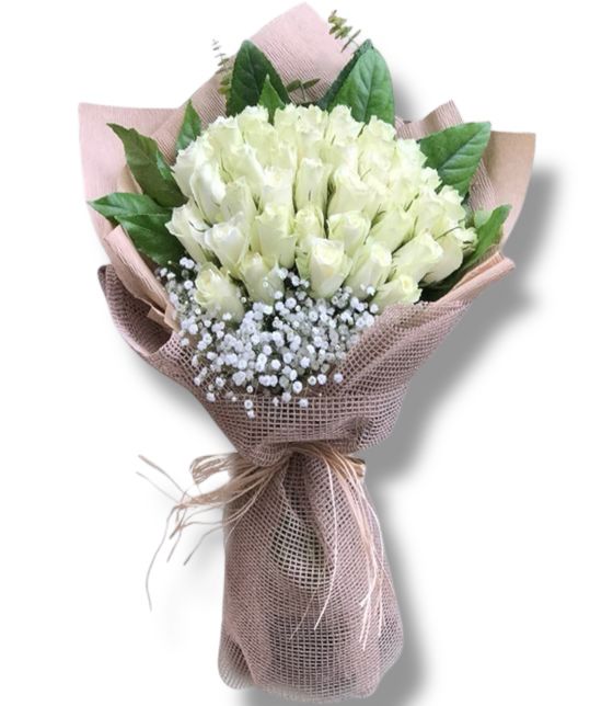 Hasır Ambalajında 41 Adet Beyaz Gül