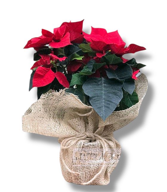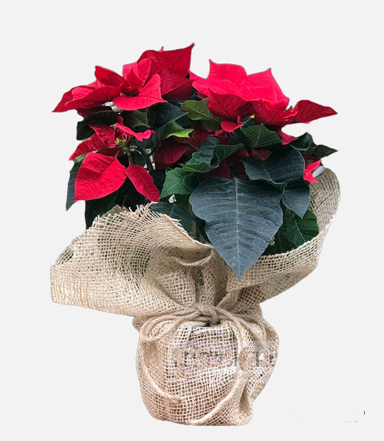 Naturel burlab ile ambalajı yapılan kırmızı çiçekli Atatürk Çiçeği Yılbaşı Çiçeği Yaklaşık Ürün Boyutu: 50cm