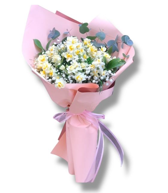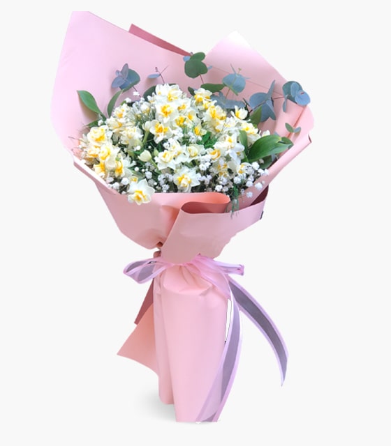 Okaliptus yeşillikleri ve cipsofilyalar ile hazırlanan 20 dal kokulu nergis çiçeği