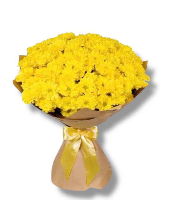 Kahverengi fon kağıdı ile çevrili sarı papatya buketi.