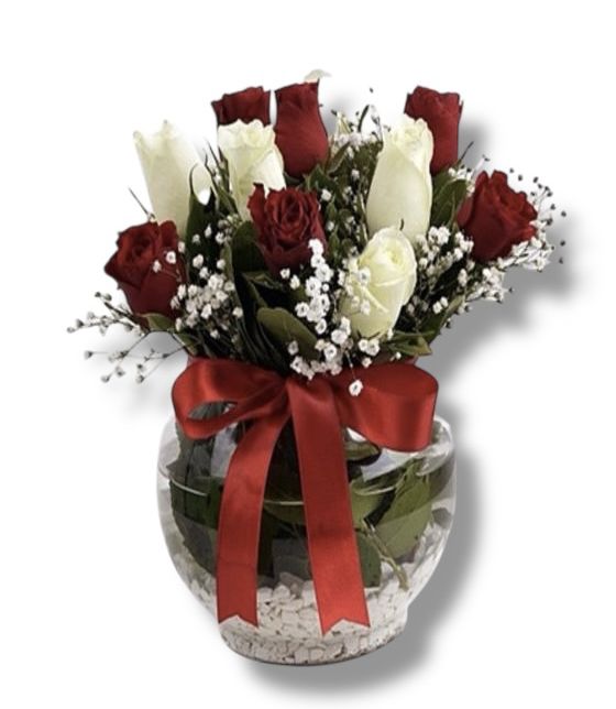 Vazoda 6 Kırmızı 5 Beyaz Gül